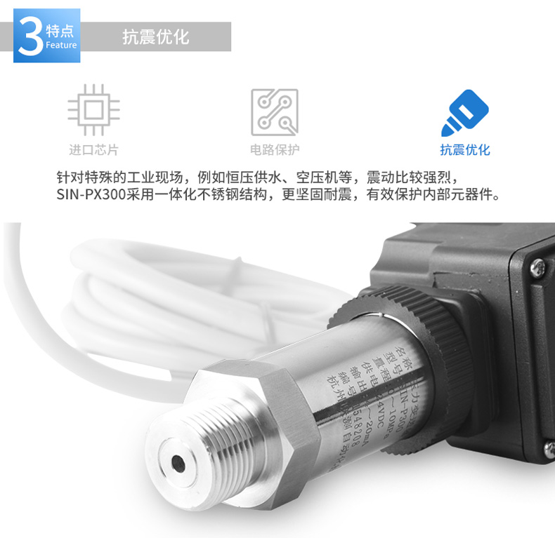 SIN-PX300型數顯壓力變送器采用無縫焊接結構,可批量化生產,經濟、可靠,具有良好的適應性,可應用于各種復雜的環境,該產品輸出形式多樣,壓力接口可提供定制,滿足您的使用需求。同時數顯壓力變送器帶有現場顯示功能,能夠更加直觀的顯示現場的壓力波動情況。廣泛應用于工業自動化設備配套以及石油、化工、冶金、電力等控制領域。