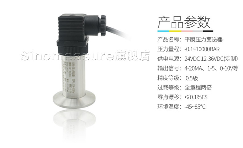 SIN-P350衛(wèi)生平膜型壓力變送器,衛(wèi)生平膜型液位變送器是測(cè)量端采用特殊堅(jiān)固處理的齊平隔離膜片。結(jié)構(gòu)緊湊、耐腐蝕,抗震動(dòng)、抗微粒沖擊、寬范圍溫度補(bǔ)償。膜片采用316L不銹鋼材料,特別適用于醫(yī)療、食品行業(yè)有衛(wèi)生要求的,粘稠流體壓力和液位測(cè)量,解決了結(jié)垢,堵塞,清潔衛(wèi)生等問(wèn)題。高精度的信號(hào)處理電路位于將傳感器輸出信號(hào)轉(zhuǎn)換為標(biāo)準(zhǔn)輸出信號(hào),可直接與計(jì)算機(jī)、控制儀表、顯示儀表等相連。采用一體化全不銹鋼結(jié)構(gòu),經(jīng)過(guò)多次不銹鋼焊接,實(shí)現(xiàn)了全固態(tài)設(shè)計(jì),安裝方便。廣泛應(yīng)用于食品、醫(yī)藥、衛(wèi)生及釀酒工業(yè)等部門。